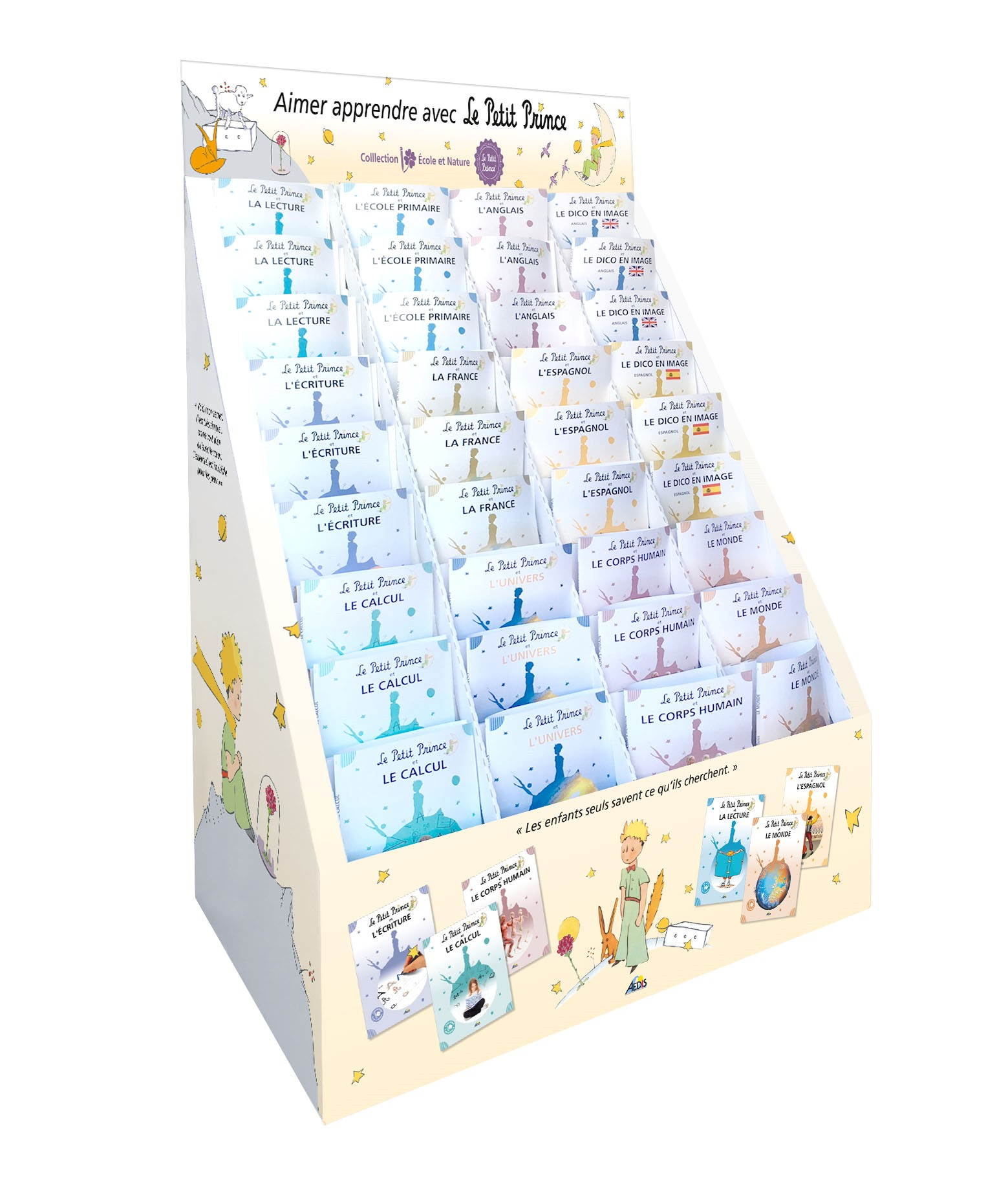 Box carton adapté à la présentation de la collection Le Petit Prince Ecole et Nature.